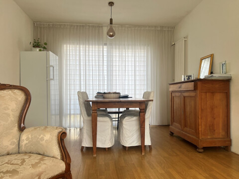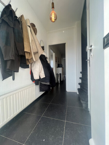 Hal met toegang tot het toilet, woonkamer en de keuken.