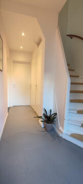 Via de entree (circa 5m2) zijn de woonkamer, keuken en de 1ste verdieping te bereiken.