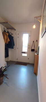 De entree is v.v. een garderobe, keldertrap en het toilet.