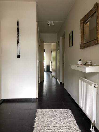 De overloop biedt toegang tot de 3 slaapkamers en de 2 badkamers. Toiletruimte v.v. zwevend closet met inbouwreservoir en fonteintje.